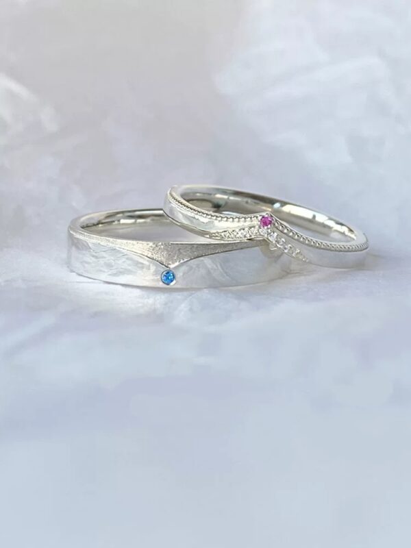 Nhẫn cặp đôi bạc s925 thiết kế Cá Jewelry làm theo size tay đính đá xanh dương hồng
